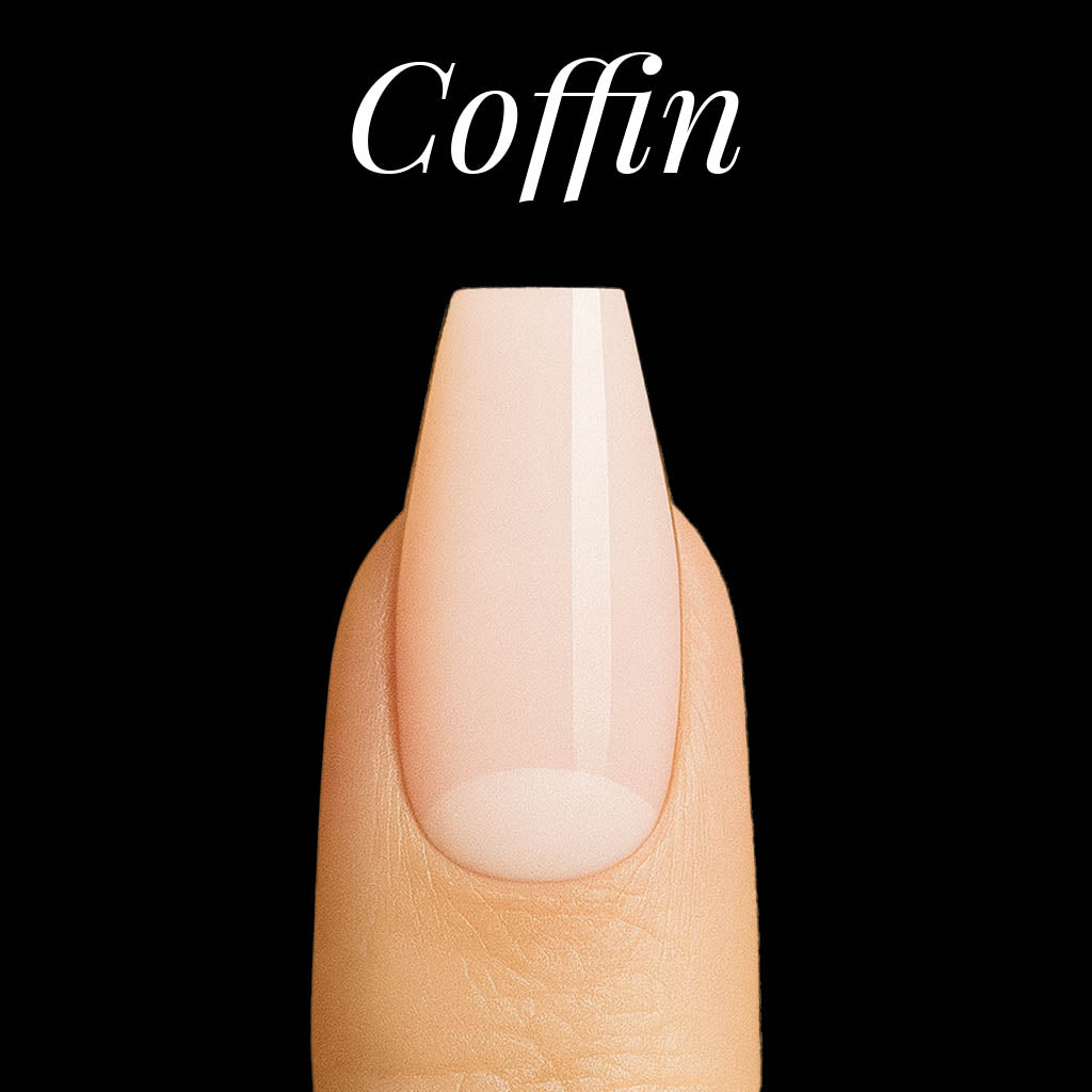 Élancée et sophistiquée, la forme coffin allonge visuellement les doigts pour un look moderne et ultra-glamour.